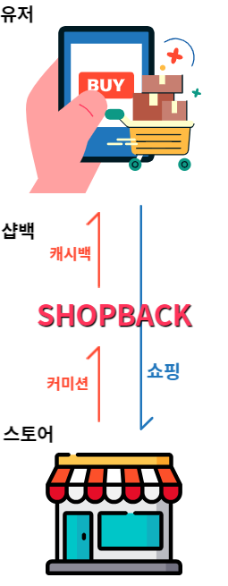 사용자가 샵백에서 스토어의 상품을 구매하면 스토어는 샵백에 커미션을 주고,
